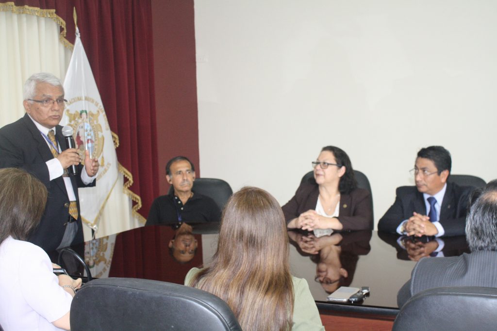 Recepción a Evaluadores representantes del CACSLA en el Salón de Grados de la Facultad de Ciencias Contables, en el marco de primera visita de seguimiento de Reacreditación 2014.