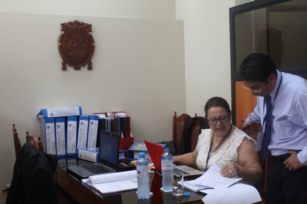 Haciendo lo propio, en la Facultad, también fueron presentados formalmente a la plana directiva y al personal administrativo, en el Salón de Grados de la Facultad, siendo los mismos, informados del objetivo puntual de la visita, consistente en la verificación del contenido del Informe de Autoevaluación de Recomendaciones, que fuera presentado por el equipo de la Oficina de Calidad Académica y Acreditación de la Facultad con las respectivas evidencias documentales recopiladas de las áreas académicas y administrativas de la Facultad durante el período octubre a diciembre del 2017.